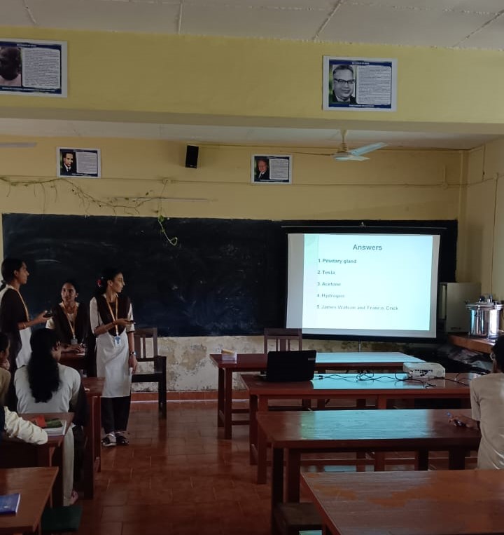 The science quiz competition was held on the 5th of May 2025. There were two rounds. Out of 18 teams, four teams will be selected for the final round on the basis of a written test. The final round was conducted on 24th May 2025. Miss Saumya S, Miss Rakshitha K and Mr.Karthik J of final BSc were the quiz masters.