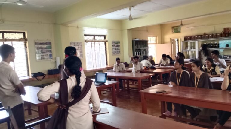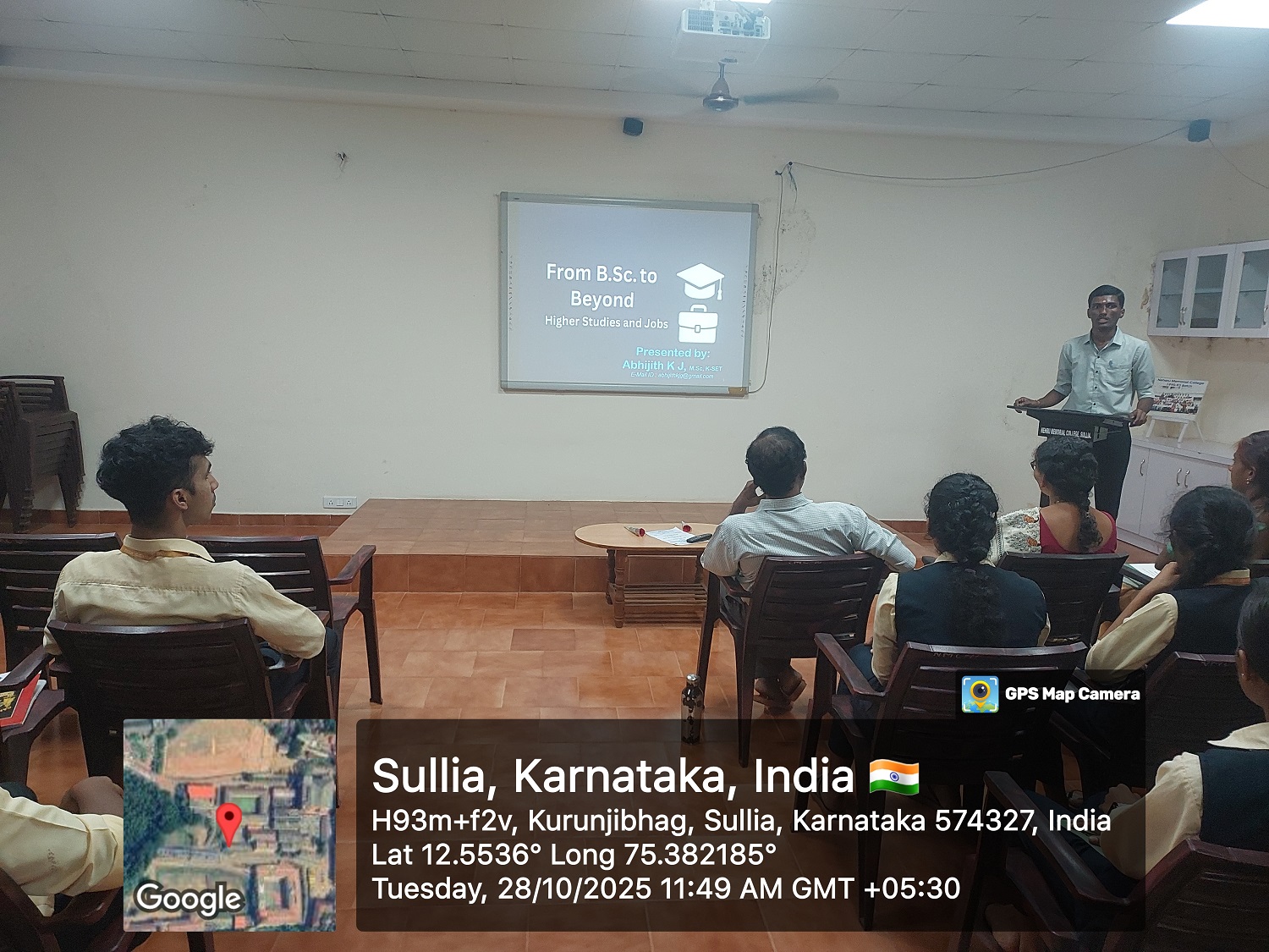 A Guest Talk on “Higher Education Opportunities and Employment” was organized by the Departments of Physics, Chemistry, and Mathematics for B.Sc. students on 28-10-2025. The session was delivered by our alumnus Mr. Abhijith K. J., M.Sc., K-SET (B.Ed.). The program aimed to provide valuable insights into current trends and opportunities in higher education and employment
