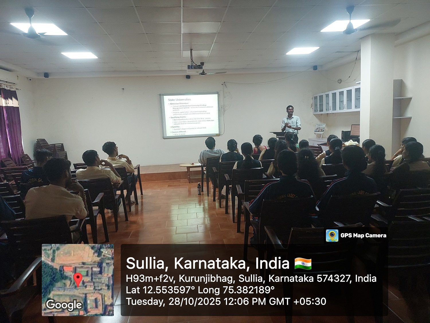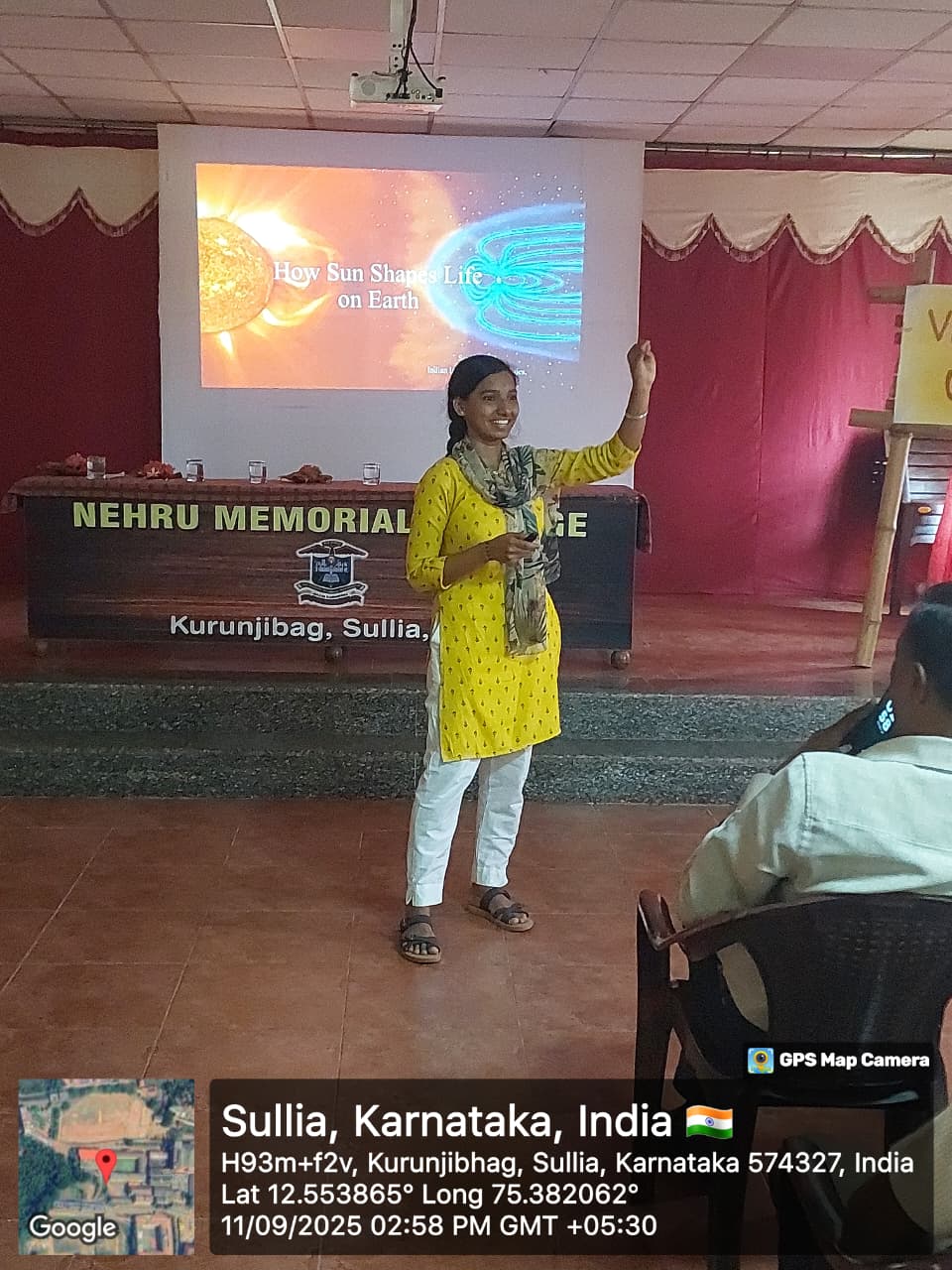 A Guest talk programme on the topic “The Sun-Shaping Life and Technology on the Earth” by Ms. Savitha.M.S. (Research Scholar, Department of Science and technology, Indian institute of Astrophysics (IIA), Bangalorre ) is organised on 11-09-2025 Dr.Rudrakumar M.M, Principal,NMC Sullia was presided the program and Mr.Chandrashekhara Peralu, Administrative officer, NMC, Sullia was the guest of honour. The objective of the program was to implant interest towards research works and allowing students to interact directly with experts and professionals in their field. Teaching and non-teaching faculties and students benefited from the program.