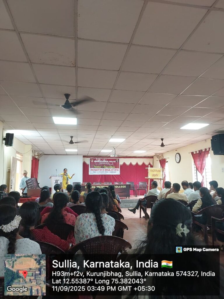The annual activities of Science association were inaugurated by Ms. Savitha.M.S. (Research Scholar, Department of Science and technology,Indian institute of Astrophysics (IIA), Bangalorre ) on 11-09-2025 Dr.Rudrakumar M.M, Principal,NMC Sullia was presided the program and Mr.Chandrashekhara Peralu, Administrative officer, NMC, Sullia was the guest of honour. All the Teaching and Non-teaching faculties and students were present in the program.